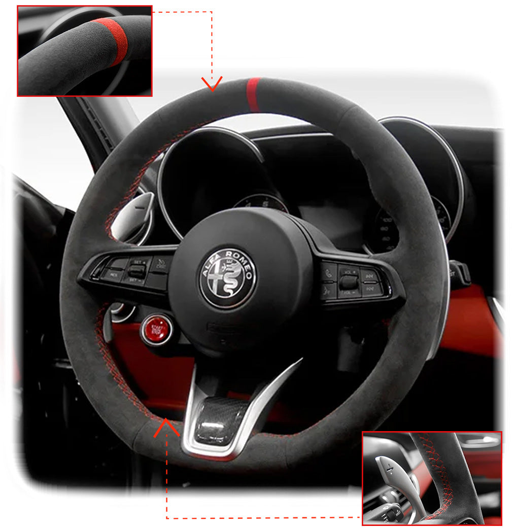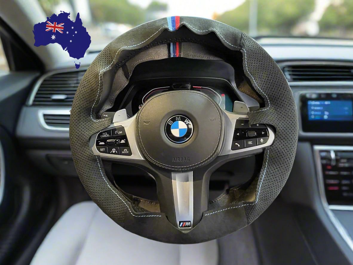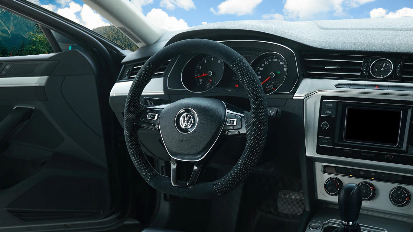 Custom steering wheel wraps are premium covers designed to fit over your existing steering wheel (No need to remove original cover), enhancing both its appearance and feel. Our wraps are tailored to your specific vehicle make and model, providing a perfect fit that transforms your steering wheel with high-quality materials and craftsmanship.